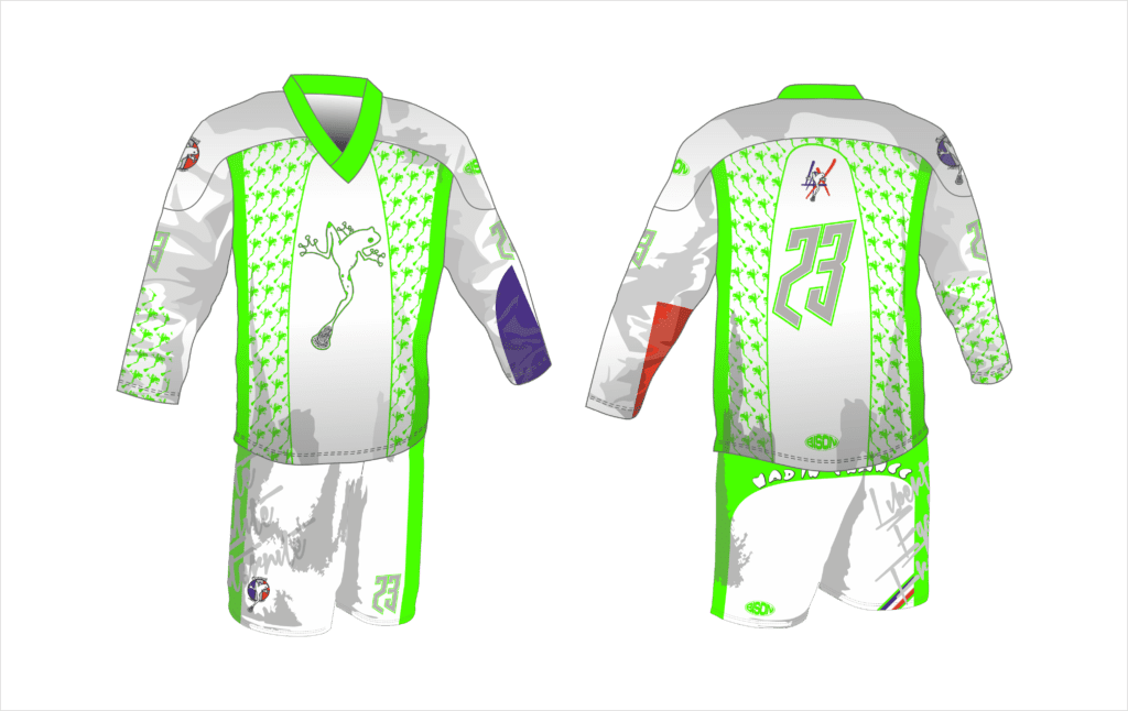 Podobný návrh lakrosového dresu zašleme i vám. Stačí jen zvolit základní podobu vašich dresů v našem konfigurátoru a odtud pak poslat žádost o nezávaznou kalkulaci.